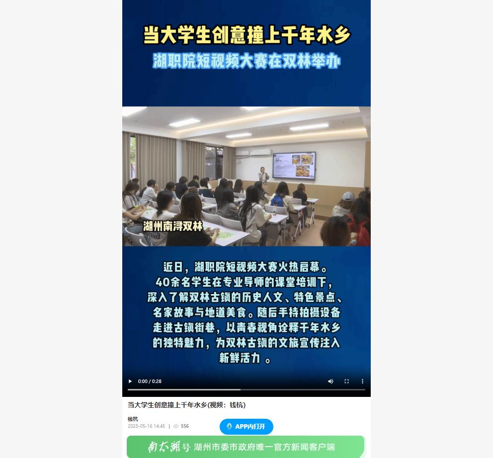 2025年5月16日《南太湖号》报道了我校短视频大赛火热启幕的相关新闻。