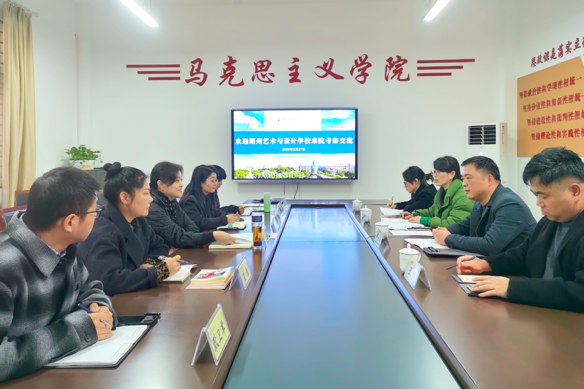 2月27日下午,湖州艺术与设计学校副校长费永军一行来我校马克思主义学院考察交流,双方围绕中高职思政教育一体化建设、党建联建长效机制等内容进行了座谈交流。马克思主义学院负责人及教师代表参加。