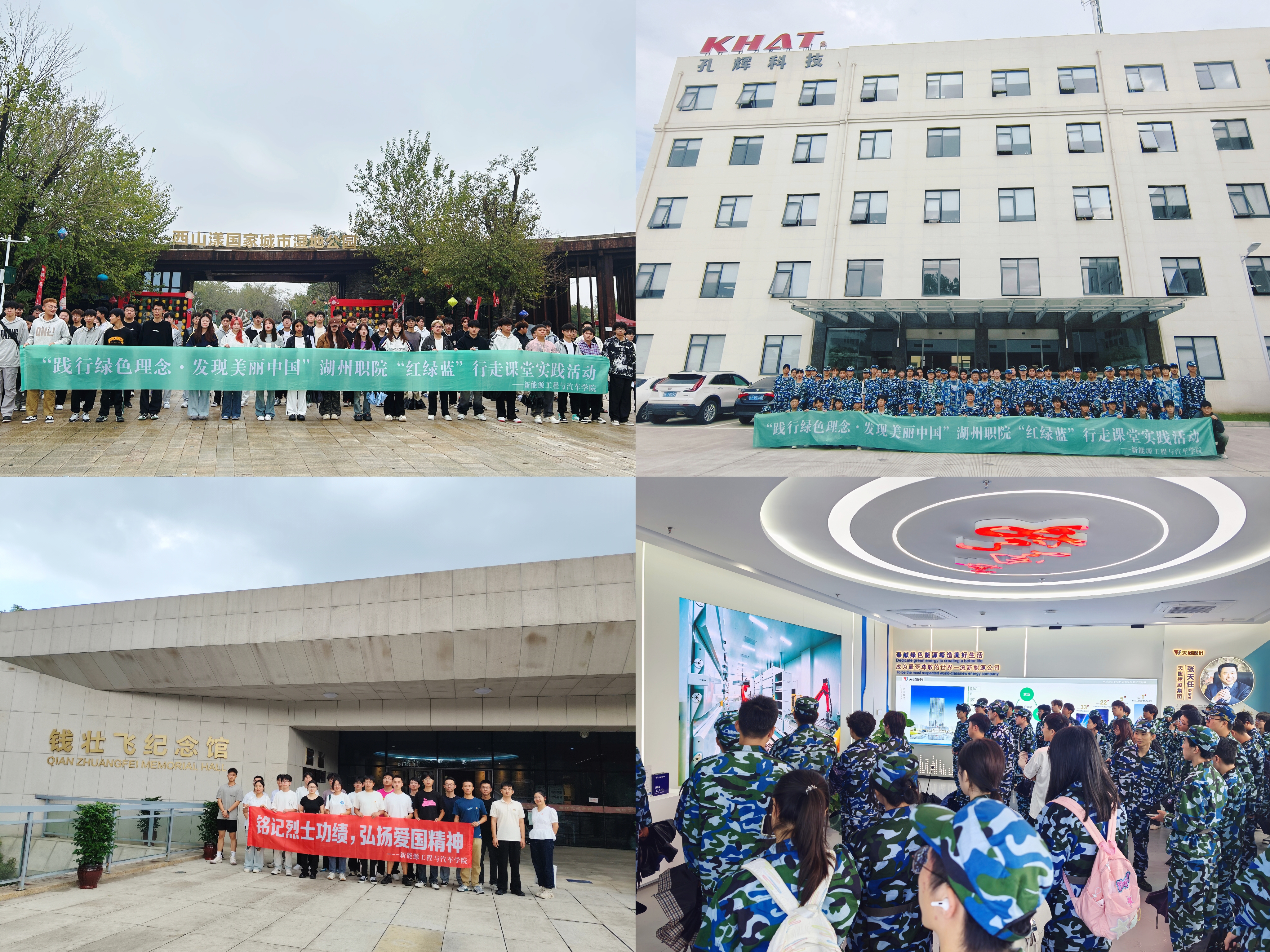为深化践行学校“坚守红色根脉,践行绿色发展,培育金牌蓝领”育人理念,推进“红绿蓝”思政育人品牌建设,9月24日-11月25日期间,新能源工程与汽车学院组织2024级新生分批次前往钱壮飞纪念馆、西山漾公园、丝绸小镇、天能、卫蓝科技、孔辉科技、蓝箭航天等地开展“红绿蓝”行走课堂实践活动。