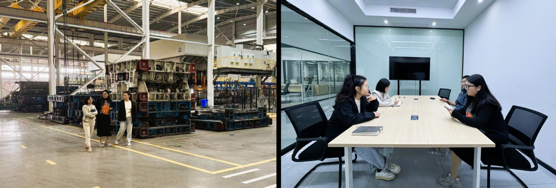 在企业人力资源总经理的陪同下,学院一行深入企业生产车间,实地感受新能源汽车零部件制造的前沿技术与智能化生产场景。车间内,多条全自动化冲压生产线、焊接机器人工作站高速运转,精准完成新能源汽车电池托盘、车身结构件等核心零部件的加工制造,展示了企业在新能源汽车零部件轻量化、高强度、高安全性领域的核心研发实力。