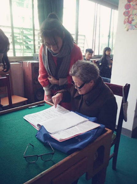 因为那天去的早,社员们还参加了老人的晨唱,虽然很多歌社员们都不会唱,但都投入了很大的热情,我们还为老人演唱了团结就是力量和北京欢迎你,其乐融融。看社员们一个个认真的模样,使我们去敬老院的意义得到了最佳的肯定。我感到极大的满足感。
