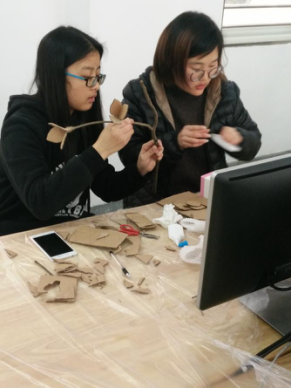 此次比赛为时两个小时,负责人给每组分发一个纸盒,并运用一定的水粉画、颜料和布艺饰品等。(有需要给纸盒加独特创意的同学,可自己准备所需材料)
