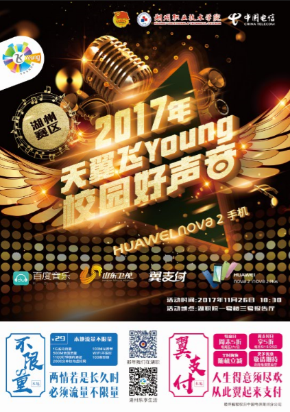 冠军:1.奖杯;2.HUAWEI NOVA2 全网通天翼电信手机(价值2199元)一部;3.代表湖州地区参加集团总决赛。