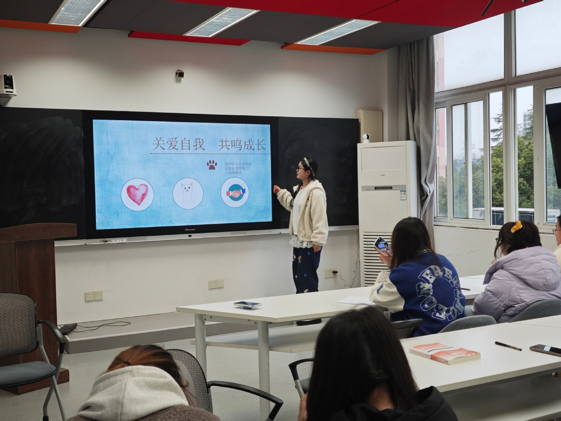 本次活动通过多元形式传递“自我关怀”理念,助力学生掌握心理调适技能,引导同学们关注自身心理健康,学会在日常生活中用合理方式提升自我成长的意识,保持理性平和、乐观向上的健康心态。在活动中同学们既疏解了情绪,也感受到互助的力量,在活动中不断提升自我,共鸣青春成长。(文/符欧)