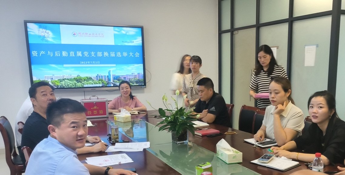 会议由周伟铭代表上届党支部委员会做报告,指出过去三年在上一届党支部委员会的共同努力下,支部工作都顺利有序的开展。随后有表决权的党员表决通过了上届党支部委员会的工作报告和《选举办法》(草案),大会公布了下届委员会委员候选人建议名单,表决通过了冯瑛瑛监票人,徐森丽、徐贝贝担任计票人。在监票人的监督下投票结果为周伟铭、刘青春、余彦、吴佩婷、黄国权五位被选为新一届委员会委员。随后资产与后勤直属党支部委员会第一次会议最终选定周伟铭为支部书记,确定为黄国权组织委员,吴佩婷为宣传委员,余彦为纪检委员,刘青春为统战委员。大会情况和选举结果报学校党委审批。