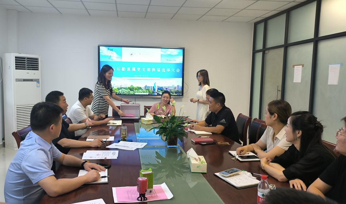资产与后勤直属党支部于7月2日下午13点30分在资产公司一楼会议室召开党员大会进行支部委员会换届。本次党员大会由支部书记周伟铭老师主持,应到会党员15名,其中有选举权党员15名,实到会党员15名,符合规定人数。本次党员大会主要是听取和审查上届委员会工作报告和进行支部委员会换届。